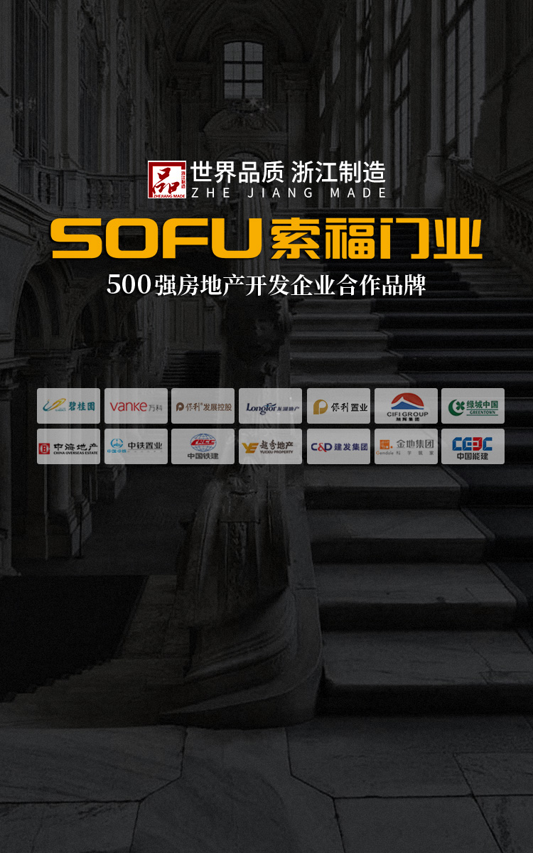 索福門業創建于1998年4月,廠房建筑面積30多萬平方米,年產門類120多萬樘,經過26年的勵精圖治,公司現已發展成為以集團化、網絡化、規?;?、品牌化經營新格局的大型企業集團,目前索福在全國擁有近萬家銷售網點,同時與龍湖地產、招商蛇口地產、新城控股、中國鐵建、中梁地產、碧桂園、中國電建、中城聯盟等百強房企建立戰略合作關系......